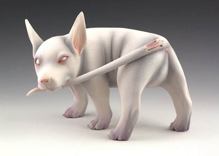 Erika Sanada is a Japanese sculptor currently based in the USA. She creates ceramic creatures that surprise by their soft colors and lines and unsettling undertones. “My work reflects the weird and the creepy. I am fascinated with the dark side,” she wrote on her website.