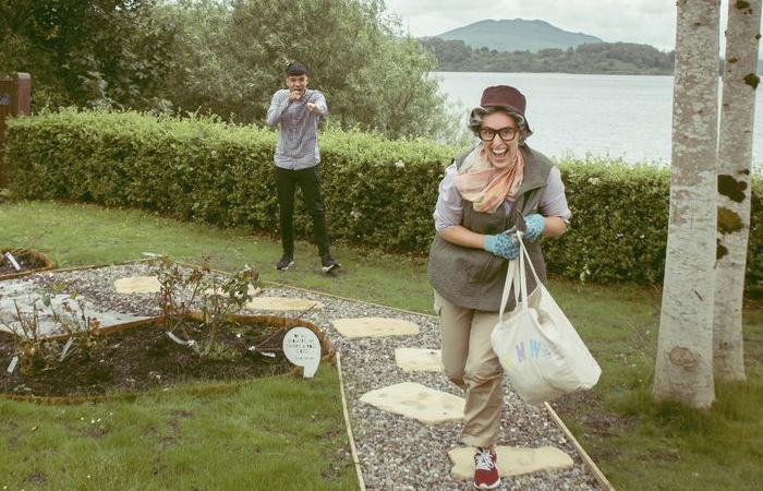 She dressed as a gardener and flew all the way from the USA to Scotland to tag Drew while he was celebrating his niece getting baptized