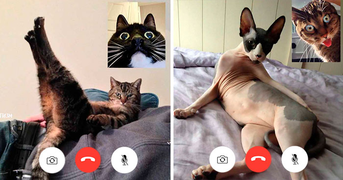 And people on the internet won’t miss a chance to get cats involved. They take a pic of a cat in an awkward position, put it in a video call frame, and add a shot of another cat stunned by the steamy pose. These pics of copycats are as hilarious as they sound, so scroll down below to check out some of the funniest screenshots. And if your feline singleton gets interested, tell him he’s being catfished.