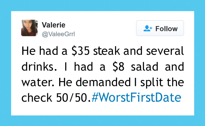 While you may have had to endure some stilted chitchat or awkward conversation starters, at least you didn’t have to experience what these people went through in the search for love. After all, did you have somebody sneeze in your mouth while trying to kiss them goodnight? No? That’s what we thought. Yes, you might have had some first date tips turned sour, but nothing as atrocious as some of these first date conversations. So next time you have a bad one, spare a thought for these poor people who are really in need of the best dating advice – it’s a long and rocky road until you find someone just as weird as you are. Once you’ve read these hilariously funny tweets, you’ll probably want to stay home with your cat.
