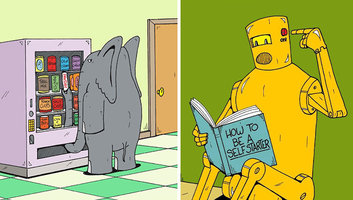 “I love the constant daily challenge of creation. To be sure, some days are easier than others, but to be able to bring a smile or laugh to so many people every day is incredibly gratifying. Of course, it’s especially fun to have multiple layers in a cartoon. If a person has to think for a bit to get the joke, I think it provides a much more rewarding experience. It allows the reader to experience an ‘AHA!’ moment. I believe it’s important to allow the reader to contribute some of their imagination to get the joke,” the artist previously told Bored Panda.