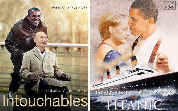 In this blog, you will see Barack Obama and Angela Merkel starring in famous movies, with Vladimir Putin occasionally joining them.