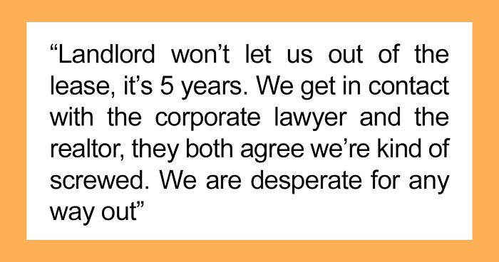 However, the landlord wasn’t going to let the company out of the lease so easily. The corporate lawyer and the realtor also agreed that there was nothing they could do to help end the 5 year contract.