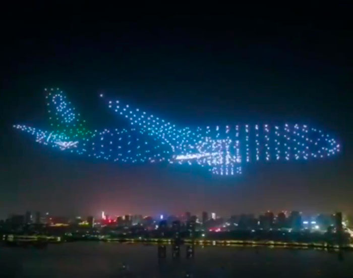 800 multicolored drones took off into the night sky to form a “ghost plane” & other aircrafts