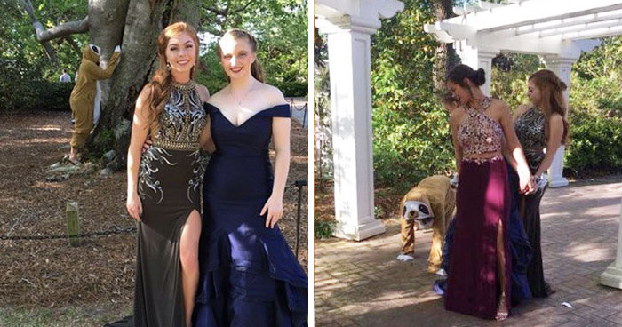 Brianna Ludlum from South Carolina didn’t go to her prom because her boyfriend had moved to Europe, but the 18-year-old made up for it in the funniest way. During the big day, she went around photobombing her friends’ pictures dressed as a sloth, and it turned out to be more than a prank. The whole thing distracted her enough to not get upset about missing the event.