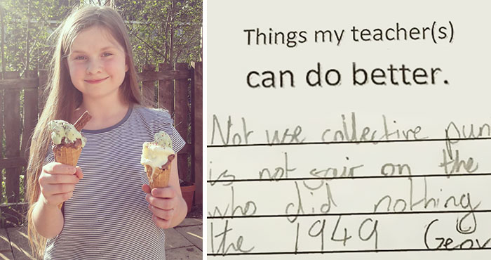 When asked at school what her teacher could do better, Ava courageously answered that collective punishment shouldn’t be used as it is not fair for the people who didn’t do anything. But that’s not all… She then backed up her statement with historical evidence, stating “under the 1949 Geneva Conventions it is a war crime”. Not too shabby for an 11-year-old, huh? Her dad tweeted a picture of Ava’s little note and it has gone viral since with over 380k likes and 116k retweets. Keep on scrolling to check it out!
