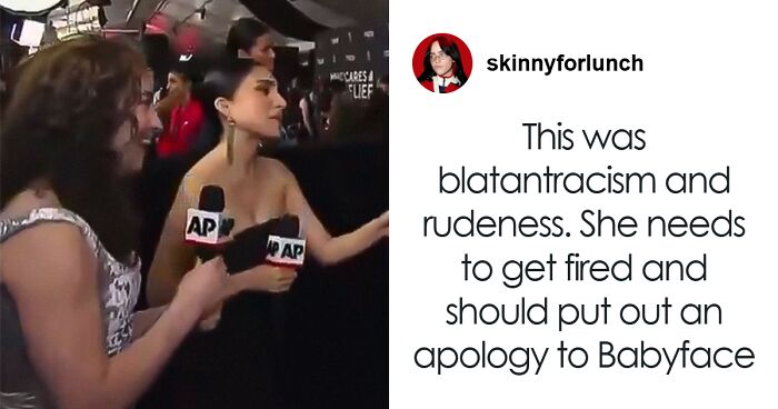 One person speculated that the reporter’s race would shield her: “Disrespecting Babyface like this during BHM should get you fired but she’s white so there’s gonna be a half a** fake apology with no real consequences.”