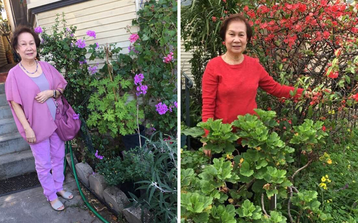 This person posted photos of her grandma coordinating the colors of her clothes to the flowers