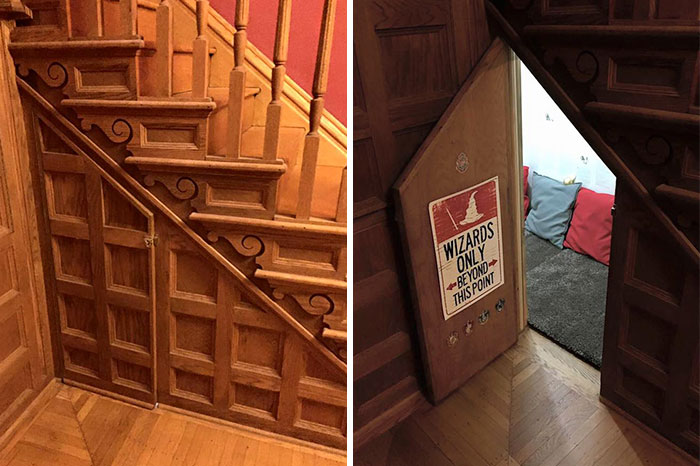 When librarian Courtney Bonnet moved into her new house last June, she knew exactly what to do with the cupboard under the stairs. Inspired by the cupboard where Harry Potter lived at 4 Privet Drive, the Pennsylvania resident used old Harry Potter books to paper the walls, turning the tiny room into a “Wizards Only” space for her kids.