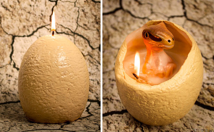 Did you know that dinosaurs were thermophilic creatures, requiring a lit candle to incubate their eggs so that they would hatch? No? Well, these baby raptor egg candles from Firebox will at least let you imagine that that’s true, all for the low price of around 45 USD.