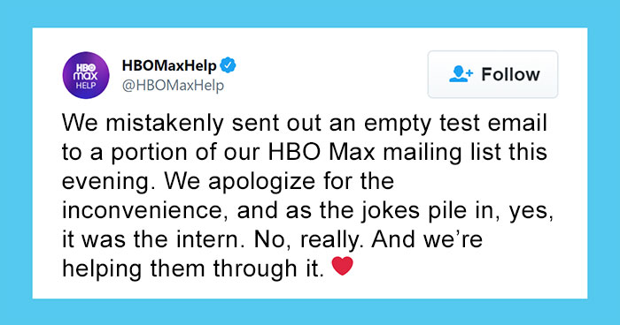 But the challenges of interning don’t end just there. It often entails the same duties and responsibilities as other workers have, plus all eyes are laid on you whenever you make a first slip-up. This is what happened to one unnamed intern at HBO Max who, according to the company, has “mistakenly sent out an empty test email to a portion of our HBO Max mailing list.” HBO wasted no time to call out the offender, stating that “yes, it was an intern.”