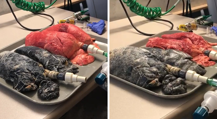 As soon as you put a cigarette into your mouth, it starts killing your body. However, coughs and other warning signs often prove too mild to make those smoking cigarettes kick the habit. But maybe this video will help them. Amanda Eller, a nurse from North Carolina, has shared a graphic comparison between healthy and smokers’ lungs. The difference is so eye-opening that nearly 500K people have already shared the footage on Facebook.