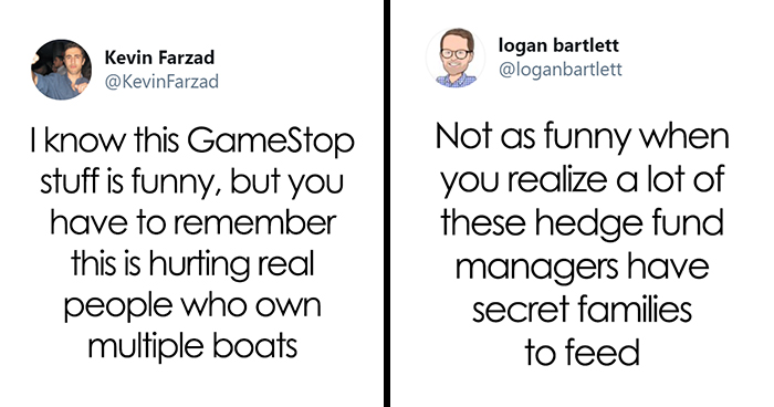 But the GameStop frenzy has not only shed light on the imbalance of power we see in this world, but has also sparked some of the funniest jokes, memes, and puns on the way. Because in the end, no matter who wins the mad stock fury, the small people of Reddit, or the rich and powerful guys, at least we got something to add to our beloved comedy department.