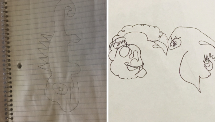 This is a fun, strange technique that builds up your creativity. You cannot look at the paper, or lift your pen up.