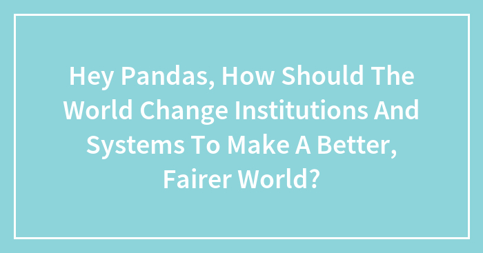 How can we change the world for the better for equity and justice for all? How would you change institutions, governments, and systems of power? How would you change finance? business? Share your thoughts.