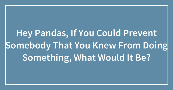 Post answers on what you would prevent someone you knew from doing something. Anything, really. It’s your choice and opinion.