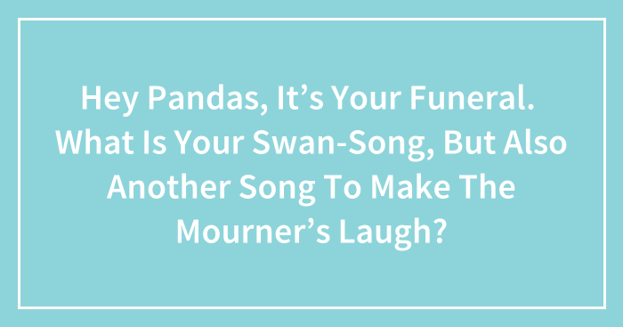 Ok. You’re dead. What would be that one song that sums up your life for you? But also, another song that would make the mourner’s chortle?