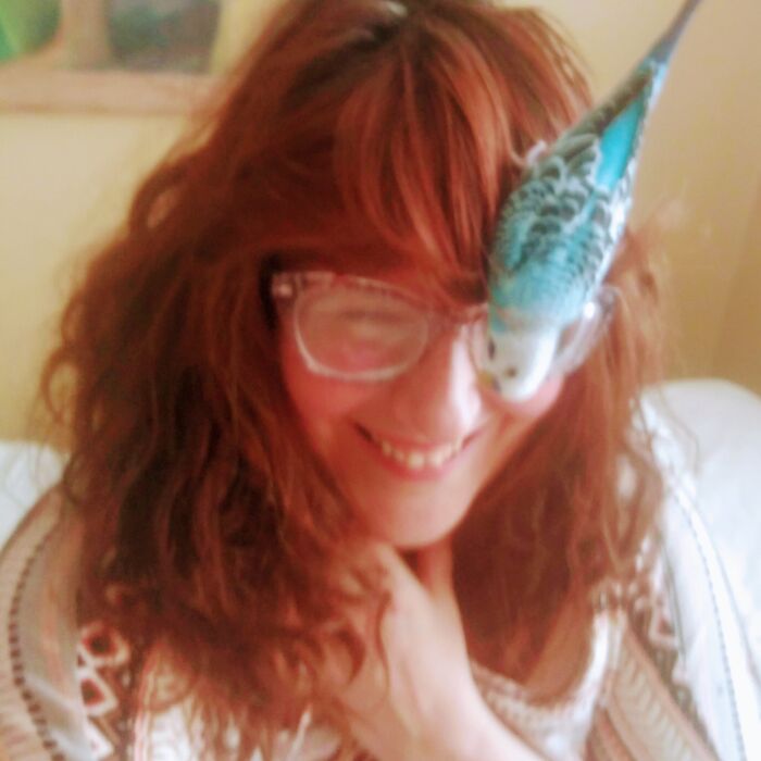 #2 Mr Chicken ( My Parakeet) Must Be On Me At All Times And He Loves My Glasses