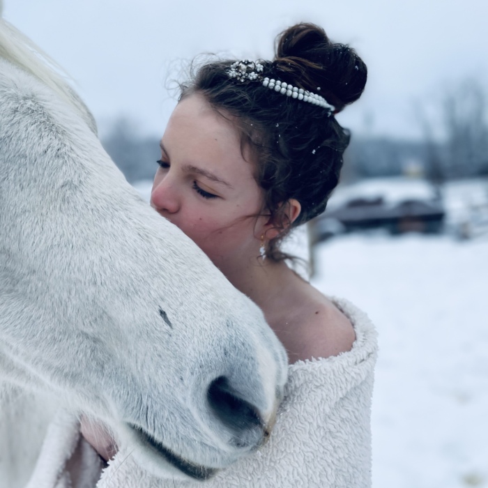 #1 My Daughter Was Struggling With Depression Mid-Pandemic So I Dressed Her Up, Took Her Out Into The Snow, And Took Some Snow Princess Pictures With Her Sweet Mare.