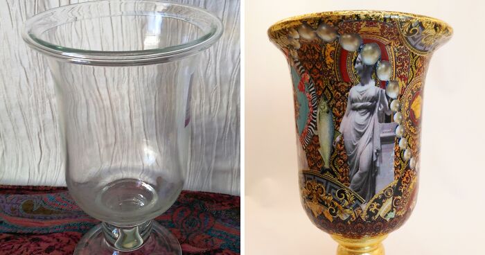#1 “Loco Rococo” Clear Glass Vessel Upcycled With Paper On The Outside Only So It’s Still Functional