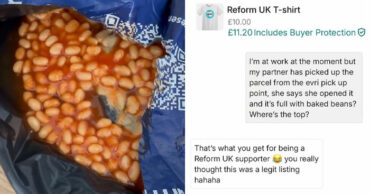 Martians in Mars Attacks — carrying sound box proclaiming “We come in peace.” while destroying everything.