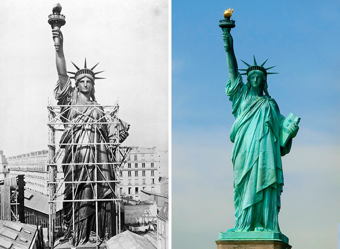 Although only the Great Pyramid of Giza remains of the Seven Wonders of the Ancient World, the modern world can surely boast with a number of memorable architectural monuments. Eiffel Tower, Statue of Liberty, Burj Khalifa… the list could go on and on. And while we can travel to most of them and see their magnificence and beauty surrounded by contemporary structures ourselves, there is something deeply admirable about the process of construction. Perhaps it’s the progress that draws our eyes, the ability to pinpoint growing elements in a building. Or maybe it’s their potential, the uncertainty of what they will look like, what effect they will have on the landscape, what future does it hold for people and how long would it survive? The wondrous possibility of our modern architectural triumphs turn into Great Pyramids of the future. Or maybe snaps of famous buildings being constructed simply fill out curiosity and adds a different dimension to an already familiar puzzle. Scroll down below to see what famous structures looked like while they were being built and don’t forget to comment and vote for your favorites!