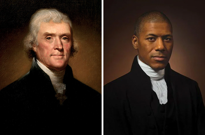 #1 Thomas Jefferson (Left), 1800 And Shannon Lanier (Right) Sixth Great-Grandson Of Thomas Jefferson