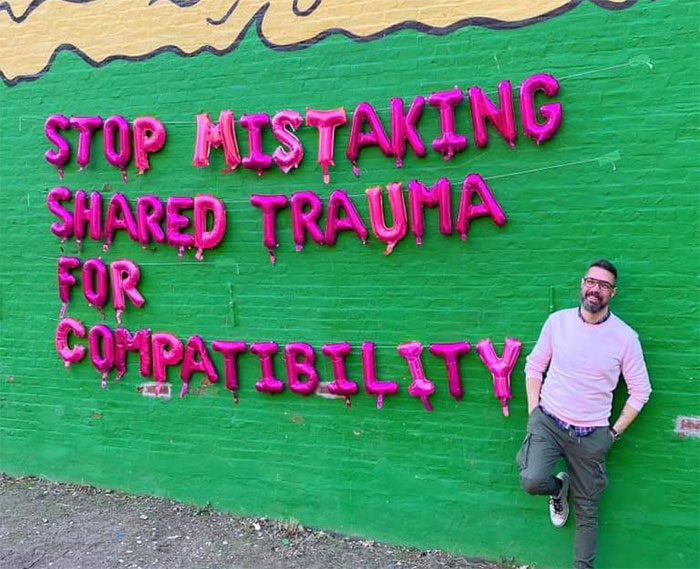 “I try to make commentary about, or poke fun at, social media. The balloons were a social media trope often used in bridal showers and gender reveals, so they were a natural progression of that idea. I love the contrast of profound, funny, or challenging quotes spelled in silly balloons. And since another common cliche is endless selfies, I tend to put myself in most of the photos. They often make people cringe, but the cringe is the point,” Michael told Bored Panda.