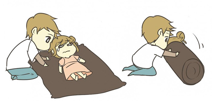 Thanks to these sweet illustrations, it is much easier to “be there” for the melancholics. Just follow the simple 10-step guide, and you’ll soon have your sad little subject wrapped up like a warm and happy sushi roll. Just make sure you choose a cheery movie. Otherwise, you’ll need to start the process all over again…