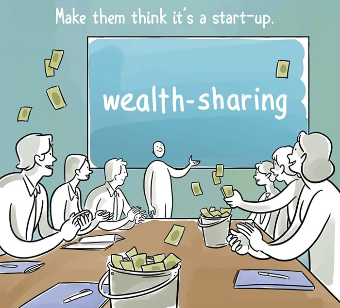 “I prefer progressive tax, which I explain briefly in another comic of mine,” Kasia said. “Basically, I think it’s absolutely absurd we allow people to accumulate billions while workers who produce their wealth are paid barely enough to survive. Nobody’s worth a billion times more than anyone else. If people were taxed accordingly, they could still live wealthy and comfortable lives, while the whole society would benefit immensely too.”