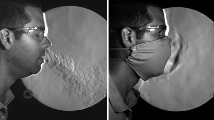 So, Matthew Staymates, a Fluid Dynamicist and Mechanical Engineer at the National Institute of Standards and Technology took this technique to demonstrate the flow of air when we talk, breathe, and cough. And it shows exactly how masks work to slow down airborne infections such as COVID-19.