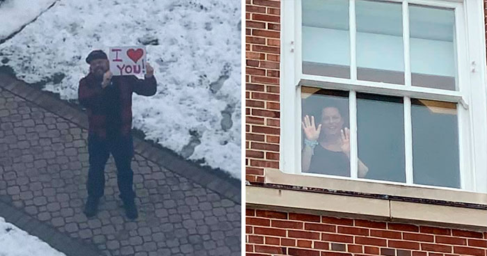 Since the coronavirus won’t let Bob visit his pregnant wife at the hospital, he’s bringing date nights to her just outside her window