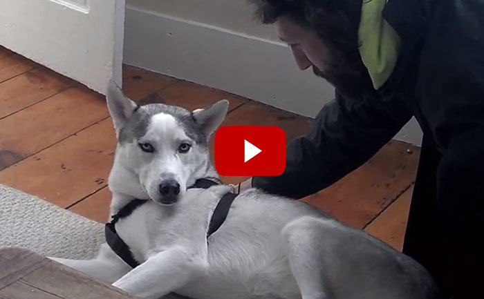 Sometimes, people and animals have more in common than you might think. Blaze, the beautiful young Husky in this video, is obstinately resisting his owner’s suggestion that he go to sleep in his kennel. In this case, the owner is just doing it to tease the pup, but all of us have probably resisted our bedtimes just at fiercely at one point or another. And because he’s a Husky, which is a very verbose breed, it sounds just like he’s saying “No!”