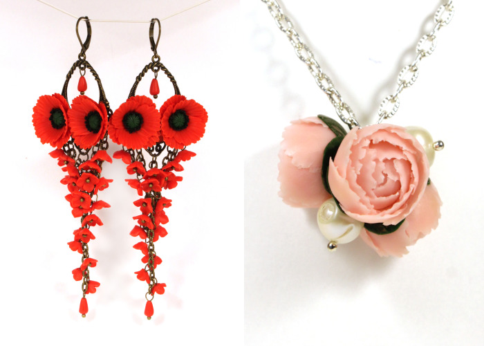 Hello! My name is Maria, I create polymer clay jewelry. In this post I will show you jewelry with flowers.