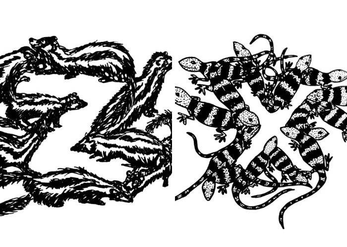 The challenge was to create one letter every day and this was the style I chose. I picked one creature every day for each letter (finding a creature for I, N and X was quite a task) and went about creating the letter using the creature in different forms.