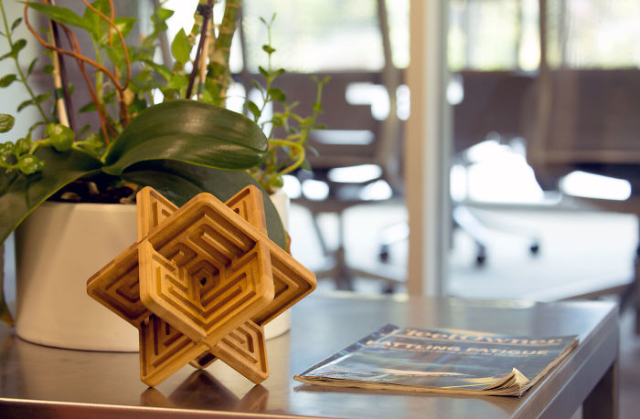 Zenth is a three-dimensional, hand-held labyrinth for whenever you need to refresh, refocus, or just get a break from screens. To use Zenth, you roll the ball through the path to the center of the labyrinth, and then back to the starting position. While unused, it sits on three corners as beautiful art for your desk or shelf. Zenth is on Kickstarter from October 16th-November 15th.