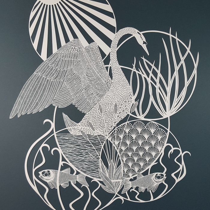 I am a paper cutting artist based in the UK. My work often depicts birds and nature, and this piece is the first in a series depicting the natural wildlife which surrounds our canals and rivers. Having spent much of my childhood on a canal boat, it is wildlife that I am familiar with and very fond of.