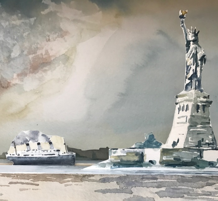 I made this painting to help support immigrants’ rights. “Breathe Free” depicts immigrants fleeing the storm of persecution while Lady Liberty stands firm as a beacon of hope. I decided I would create a one-of-a-kind moving painting to raffle off, with all proceeds going to the ACLU. As with all my paintings, they are made with multi-media, including watercolor, and gears that I designed and printed on a 3D printer. Please see BenRaynes.com for a chance to win this painting.