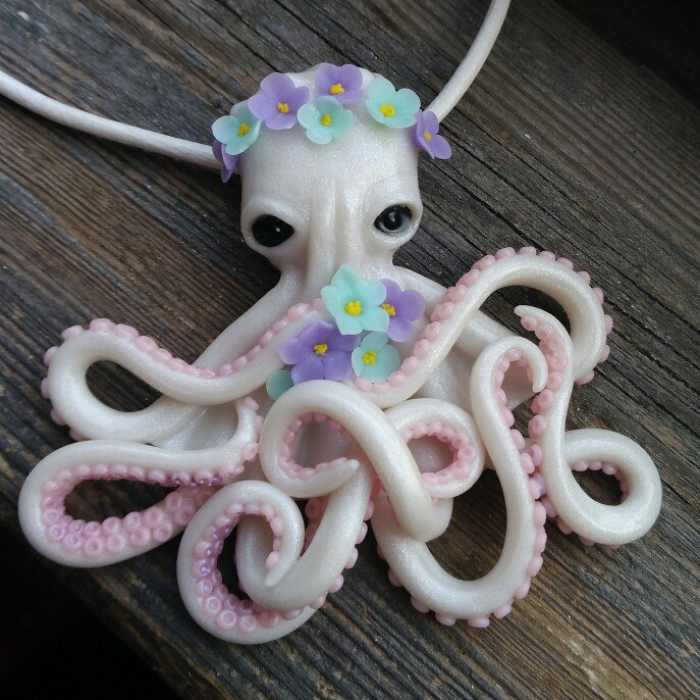 Among my necklaces there are octopuses with flowers, with a guitar, watermelon and with a metallic effect. I hope everyone will choose octopus for himself!