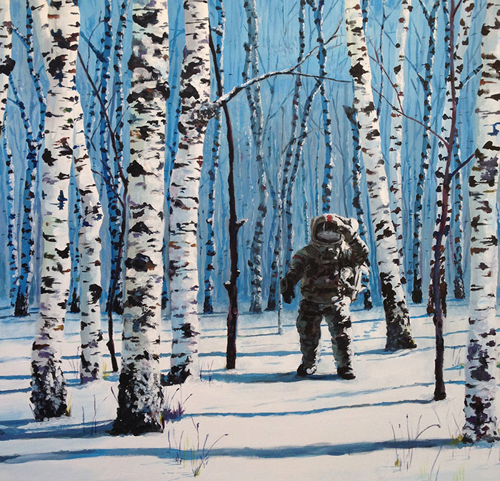 The doodles from my elementary school notebooks featuring huge, flying fruit, astronauts and weird orbs quickly found their way back into my art alongside my love for the Danish countryside.