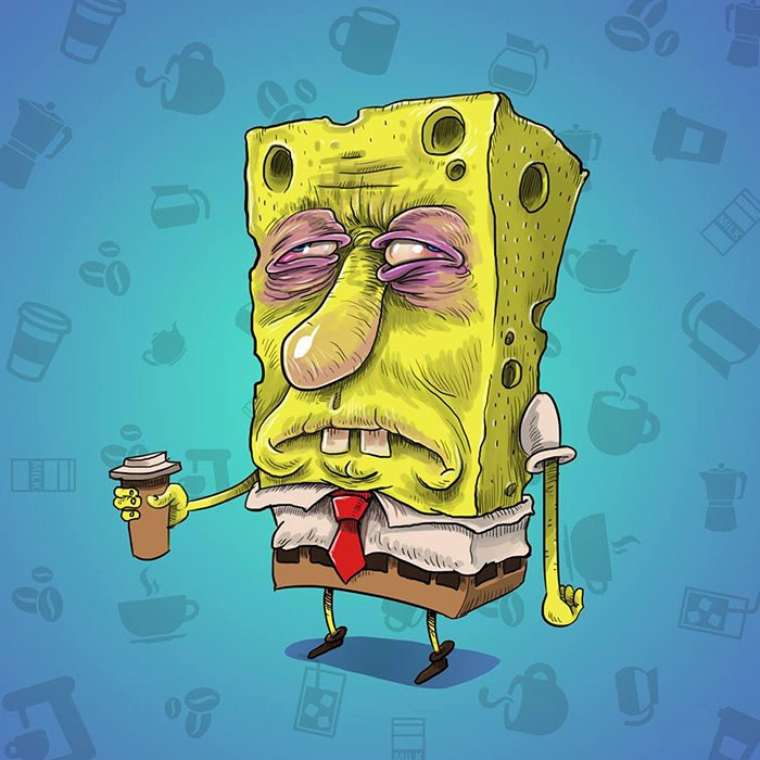 Hi there! I painted zany portraits of famous cartoon characters before they’ve had their usual morning coffee. We all know somebody who looks like these famous characters in the early hours of the day…