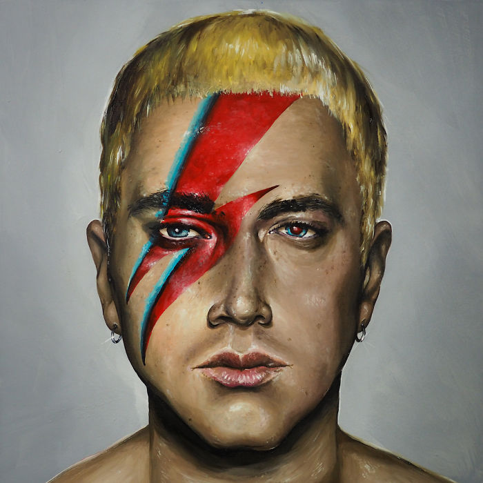 I was contacted by Gabba Gallery in Los Angeles to create 12″ by 12″ paintings for their upcoming vinyl inspired art show. Immidialaty I knew I wanted to include iconic vinyl logos, but how? When I hear classic rock, my dad and childhood come to mind. Growing up when my dad was working he would try to teach me about his favorite rock groups when all the while I wanted to listen to the hottest hip hop. This was the late 90’s and early 2000’s and our music preferences couldn’t be more different. I went to work brainstorming on how I could turn this into a visual project. This series is acrylic paint on wood panels and you can learn more about my inspiration and process at my website blog www.cold-studio.com .