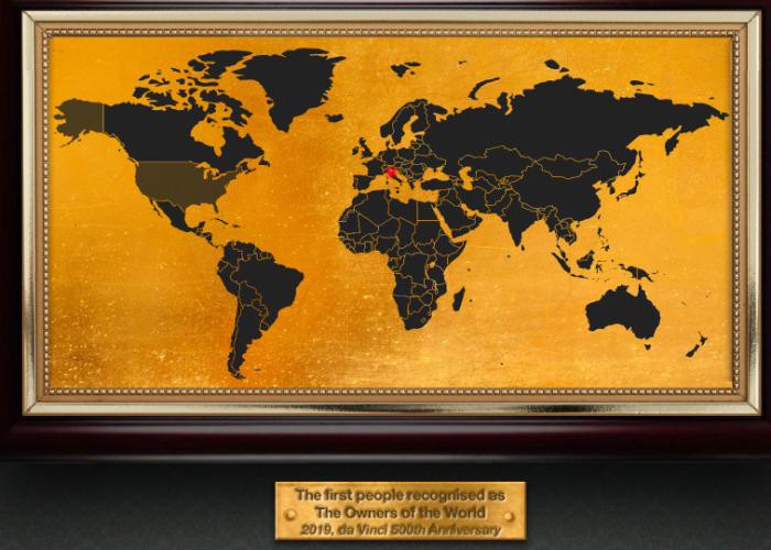 Being a big Leonardo da Vinci fan, I got into the artwork like it was a real painting, I started creating a mathematical formula that used the Fibonacci sequence to use as much of the real-life attributes of a physical painting into my digital artwork. The whole idea started in 2010 and I finally released it – the internet artwork Gold Diamond World, the place where 180 countries can be owned, marking Leonardo da Vinci’s 500th Anniversary.
