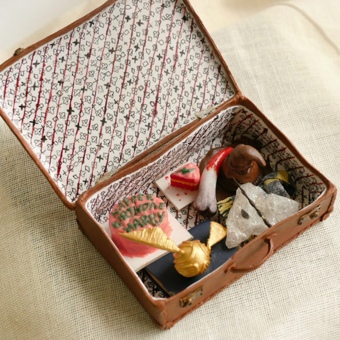 My goal is to make things that are useful if not interactive, hence I also made Newt’s suitcase (and his scarf!) so I can store everything in it.