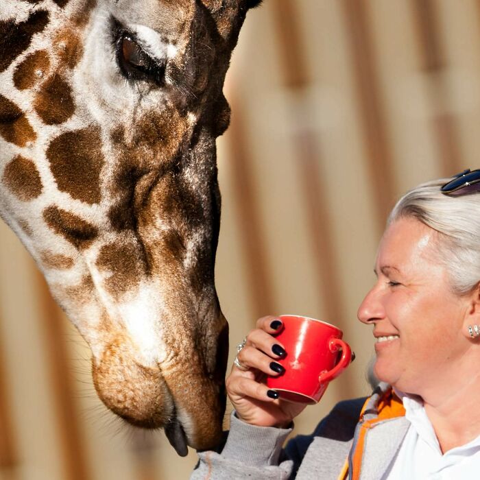 Zookeeper Jasmina Trajkovska starts every morning with a coffee together with her best friend giraffe, in Skopje Zoo.