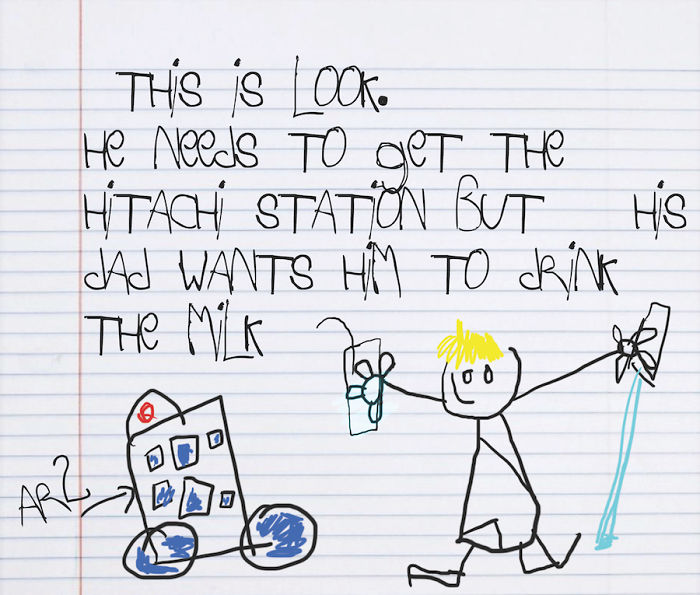 When you’re 5 years old, apparently even Star Wars can be simplified into a single sentence and a drawing.