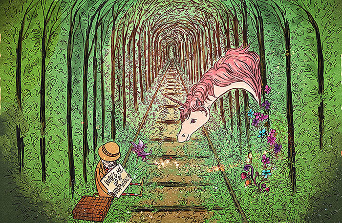 “Wake Me Up At HappyLand” is a short, (almost) wordless picture-story about a man travelling the world in search of the Happy Land. Afraid that he might miss it, he carried a sign with him, reminding others to wake him up at the Happy Land. But no one did, and he continued his wanderings until…