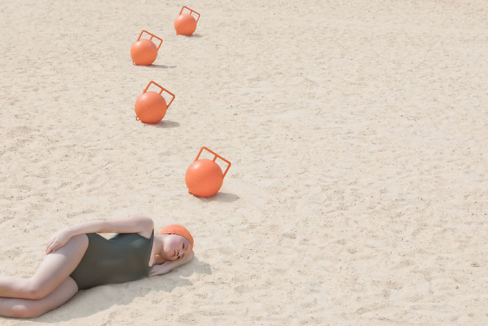 In the series ‘Stillness’, the seascape becomes a metaphor for life, with the buoys as reference points, that keep us stable in a constant flow of time and events.