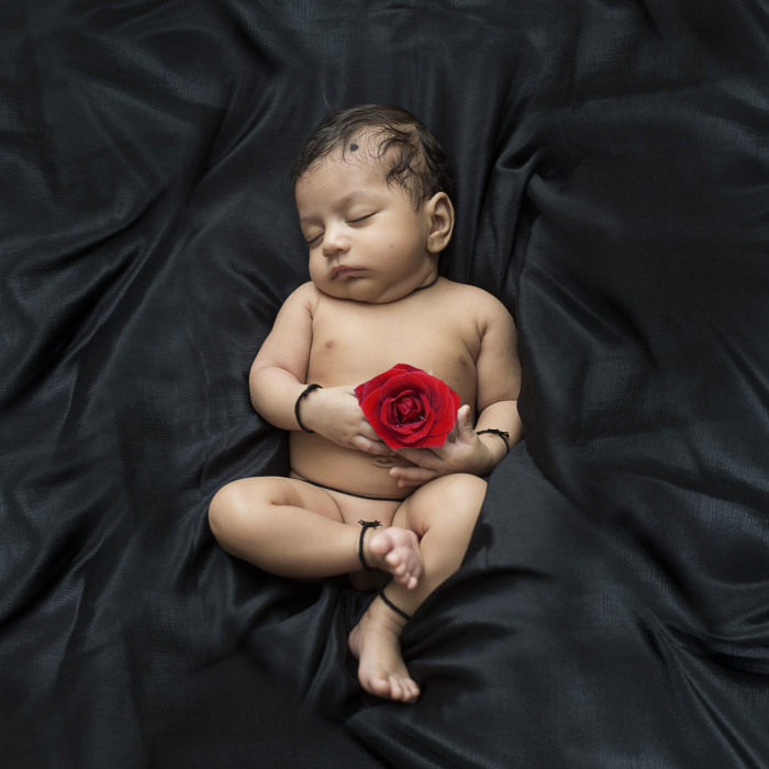 A newborn name ”samatva” poses like old yogi during photoshoot.