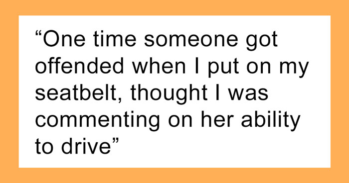 One time someone got offended when I put on my seatbelt, thought I was commenting on her ability to drive.